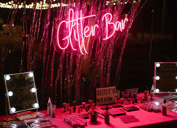Consiste en la aplicación de Purpurina Cosmética, y fantasía flúor. Una idea divertida para tu boda o celebración que hará más divertida la hora del baile. Servicio para eventos.